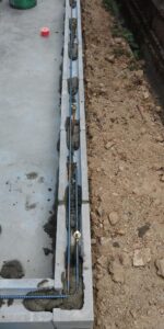 コンクリートやモルタルが乾いて強度がでてきたら、土台を敷きます。
